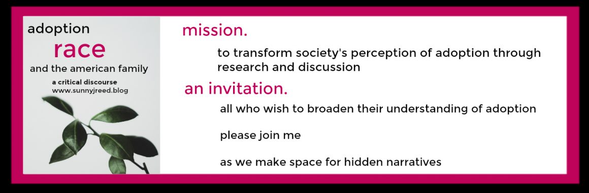 Thinking about how to “solve” the problems inherent in transracial adoption, that is, those of white supremacy, systemic racism, and overall, the rush to place children of color (CoC) in “good” homes, might be missing a more theoretical framework. Bear with me, as I’m working through my research ideas here but tell me if I’m onto something. But if we’re to consider transracial adoption and all of its current flaws without discussing not why, in its current form, it harms CoC, but instead how its existing and historical theoretical structure functions to oppress rather than serve, we might actually more successfully challenge the present practice and finally rebuild it.